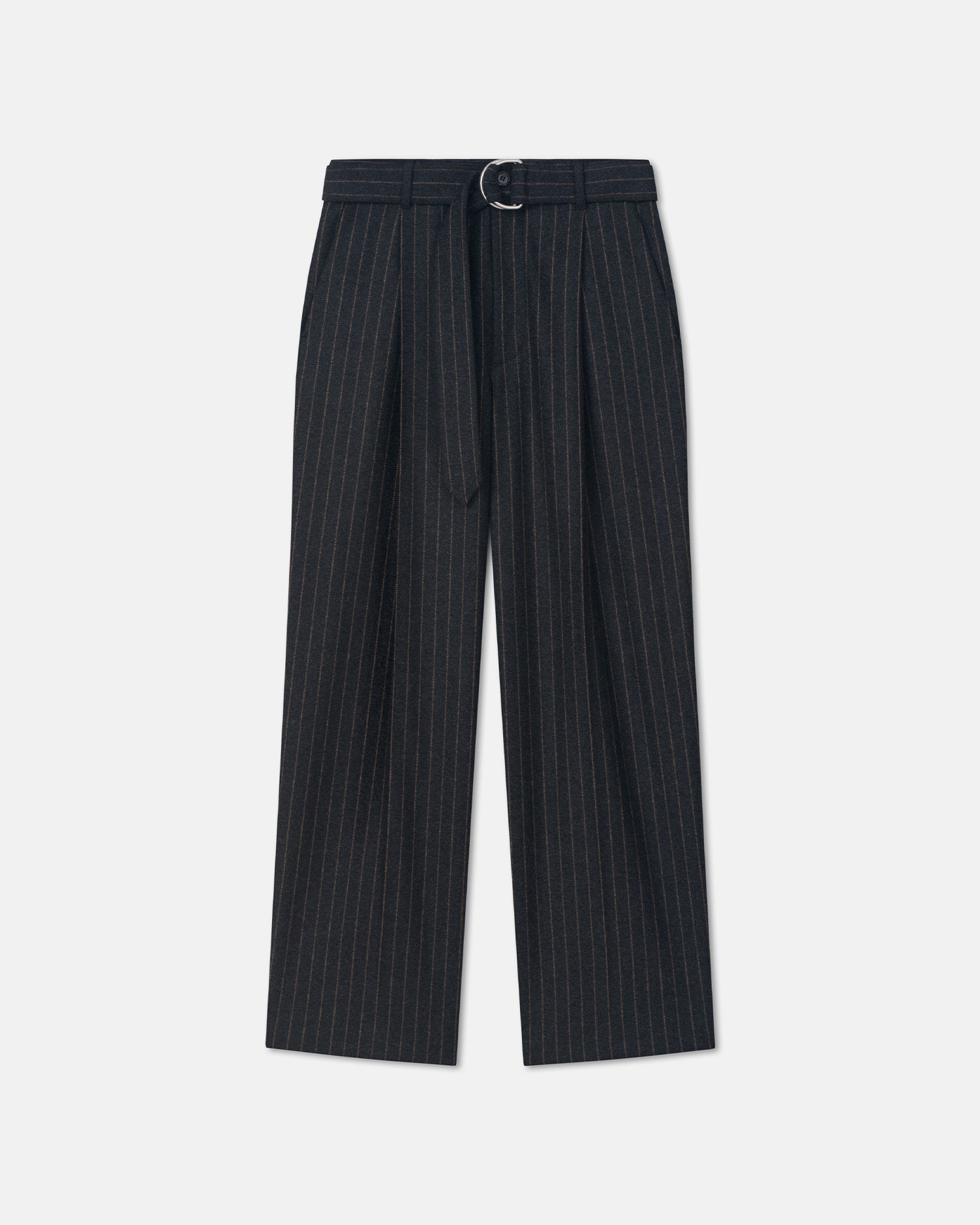 The Colten pants have a straight-leg fit accentuated by sharp pleats and a belted waist. The easy-going silhouette and pinstriped wool construction make for a contemporary contrast.