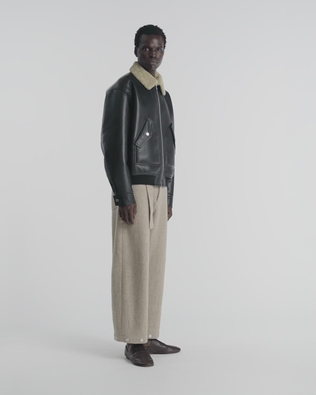 With a bonded shearling fabrication and immaculate detailing, the Lude flight jacket is as elegant and considered as they come. Incredibly warm and insulating, it has an oversized silhouette and capacious snap-fastening pockets. It’s a classic and beautifully crafted garment that will only get better with age.