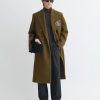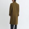The Zenin coat is relaxed yet refined. Made from soft and warm felted wool, it has a sharp double-breasted silhouette offset by dropped shoulder seams and rounded sleeves. Please note the brooch is not included.