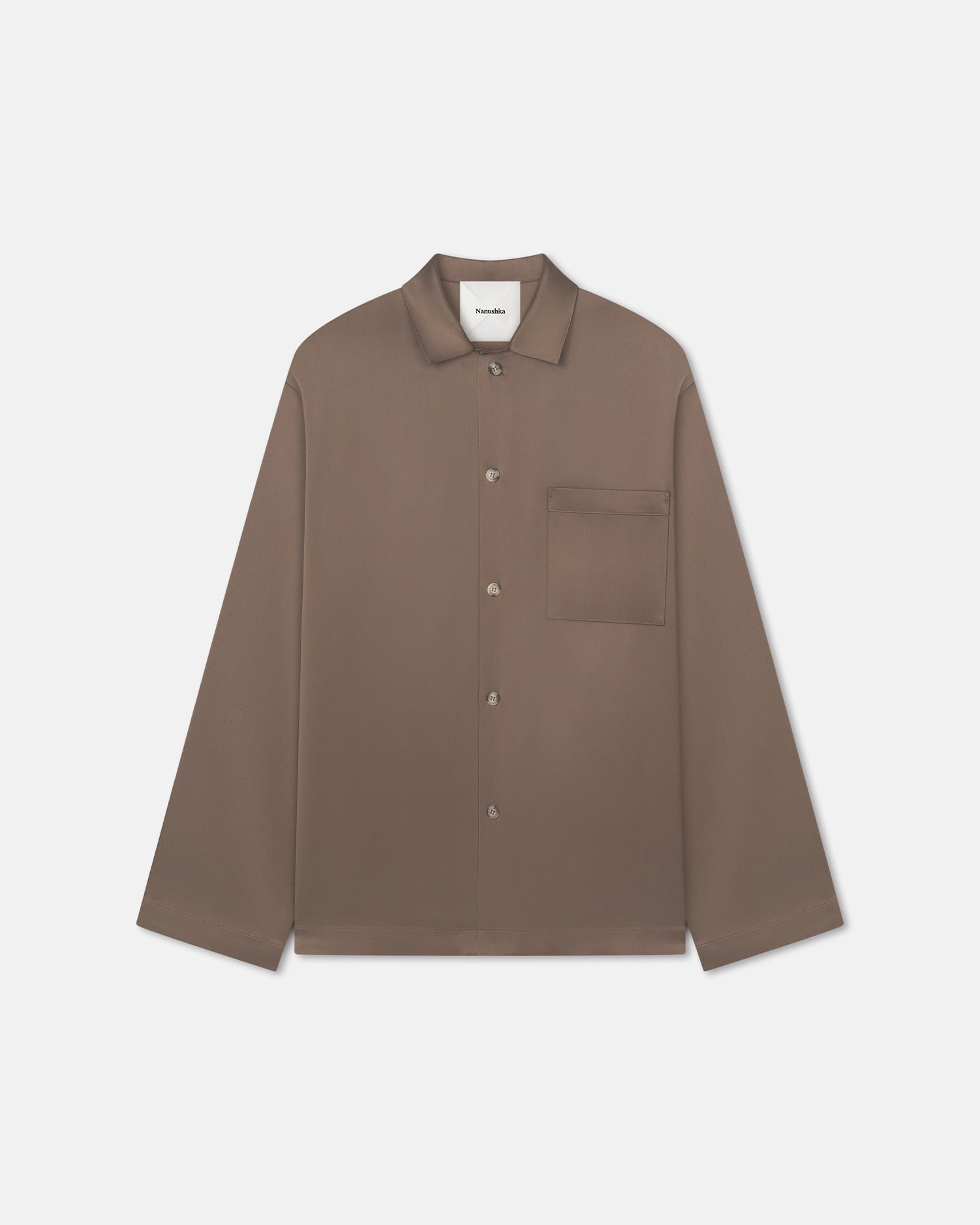 The Jelmer shirt is crafted from our signature slip satin for a slightly oversized fit with a point collar and button fastenings through the front. The coffee-bean tone is elegant and refined.