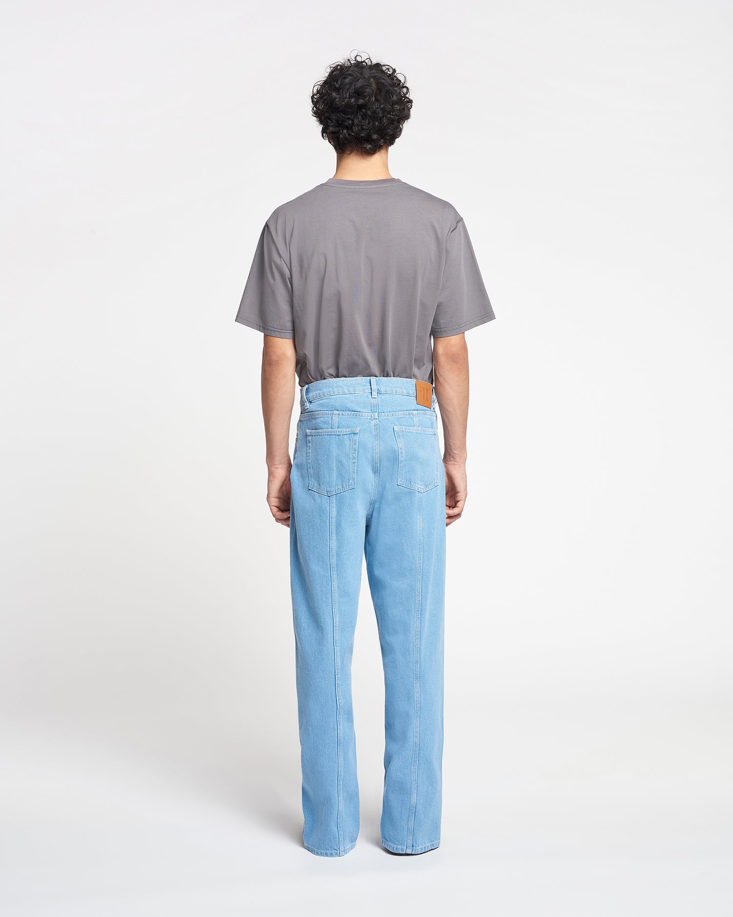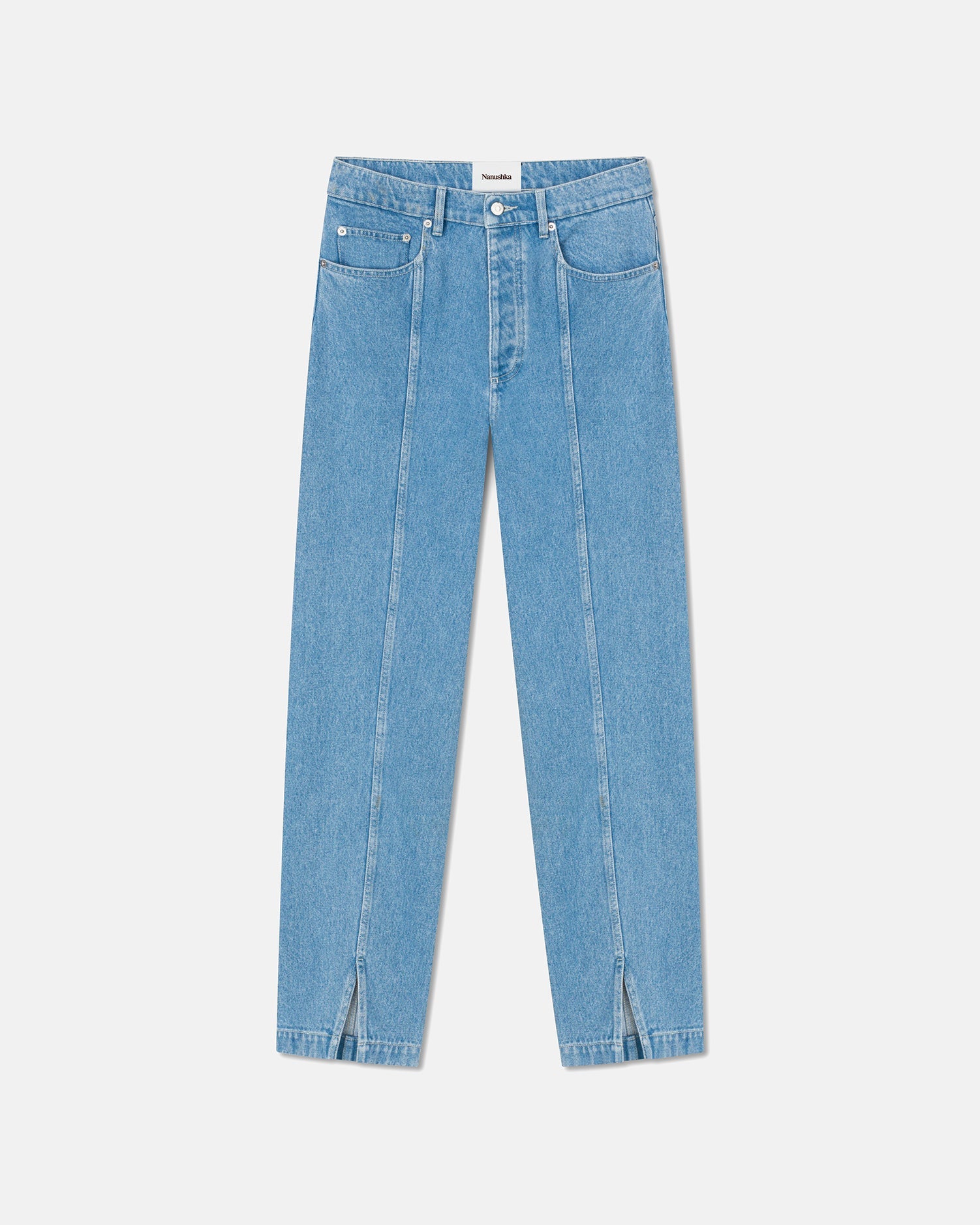 The Tibes jeans are expertly crafted from our eco denim in a classic light wash. They are distinguished by sharp slits at the hem to enhance the loose, easy-going fit, and finished with belt loops and five pockets.