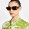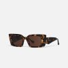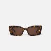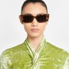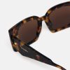 The Carmel sunglasses are defined by bold, rectangular frames. They are made from glossy dark-amber bio-based materials and are detailed with gold-tone hardware at the temples.