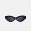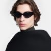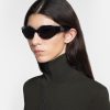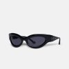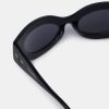 The Trysta sunglasses are inspired by 90s sporting styles. Crafted from bio-based plastic, they have a distinctive design that wraps around the face. They are minimally detailed to keep focus on the statement shape.