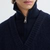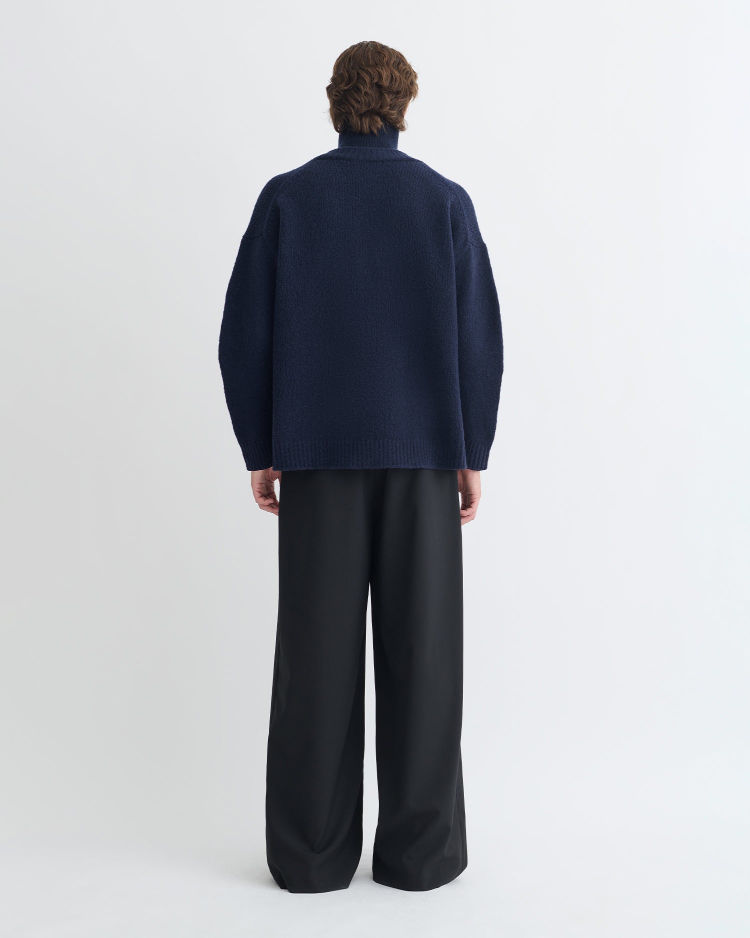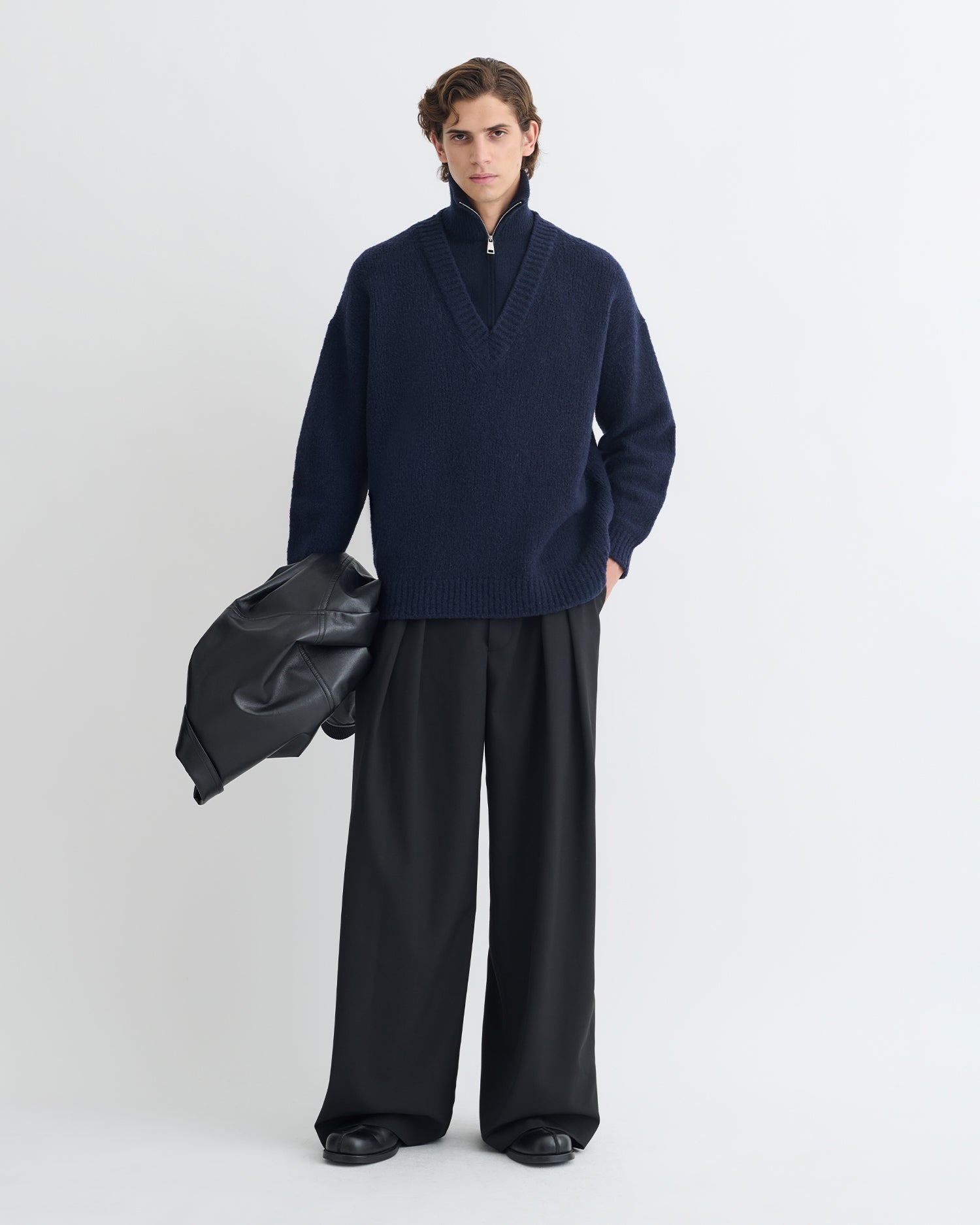 Sports-inspired details juxtapose classic elements throughout our Pre-Fall ’25 collection. The Kylen sweater combines a classic V-neck silhouette with a zip-up turtleneck. It’s made from brushed merino for extra softness.