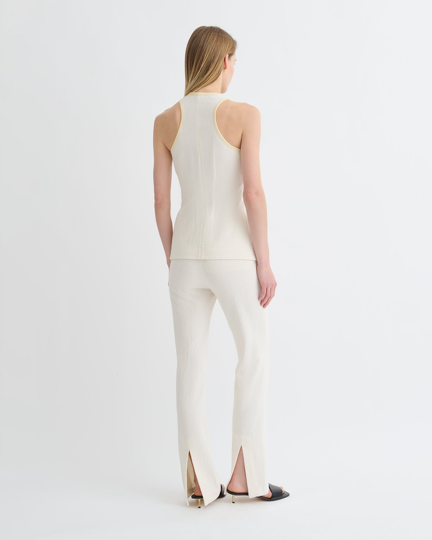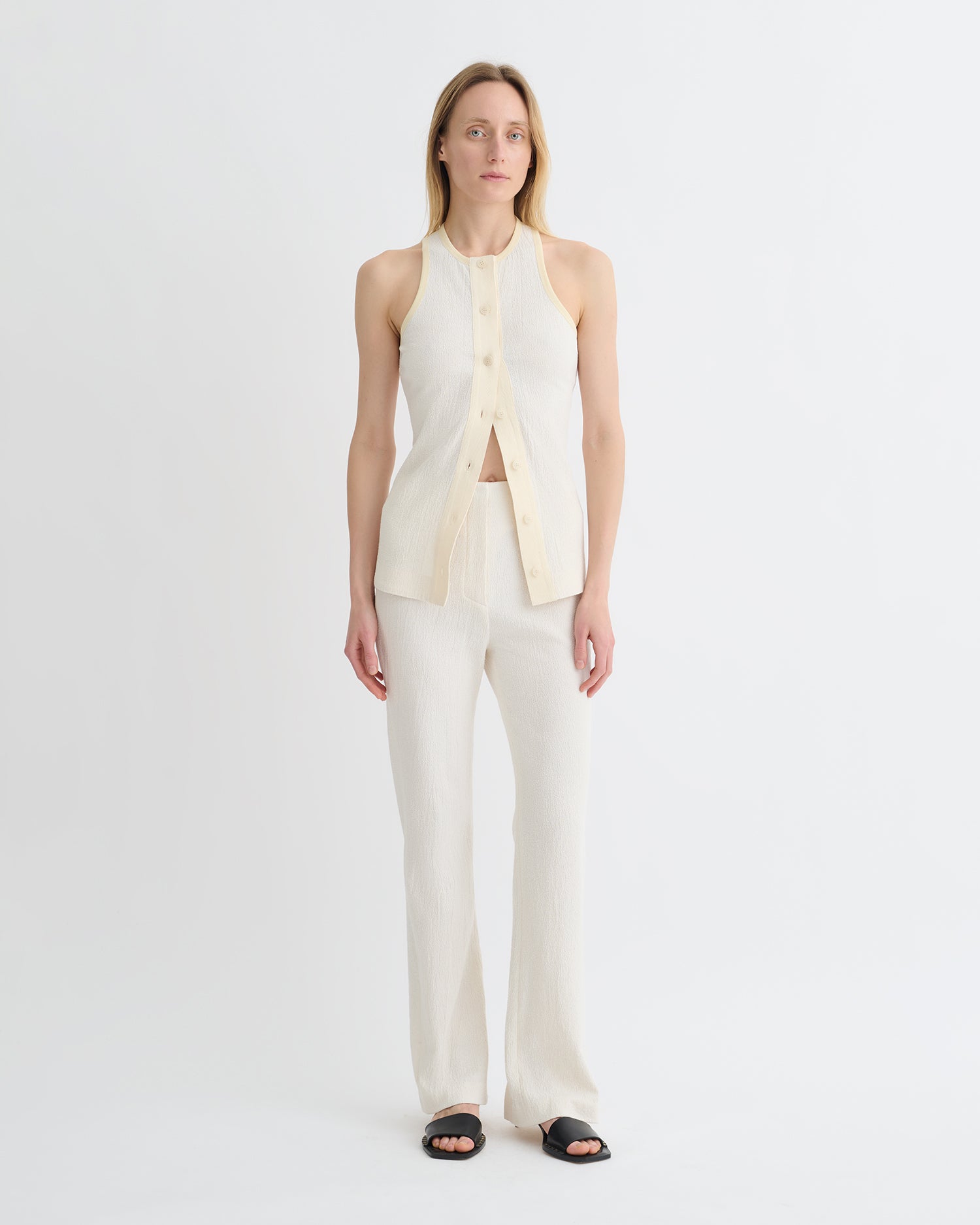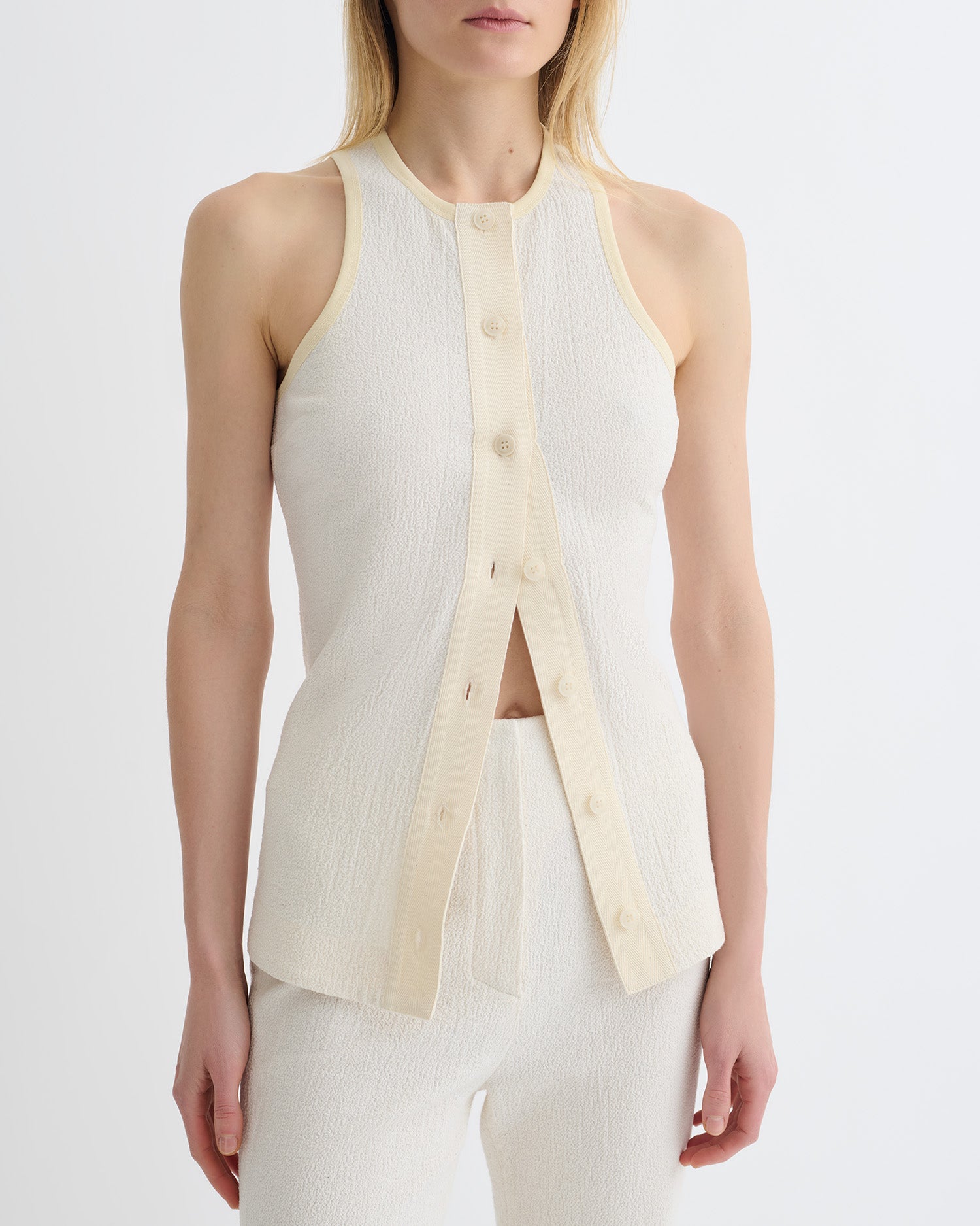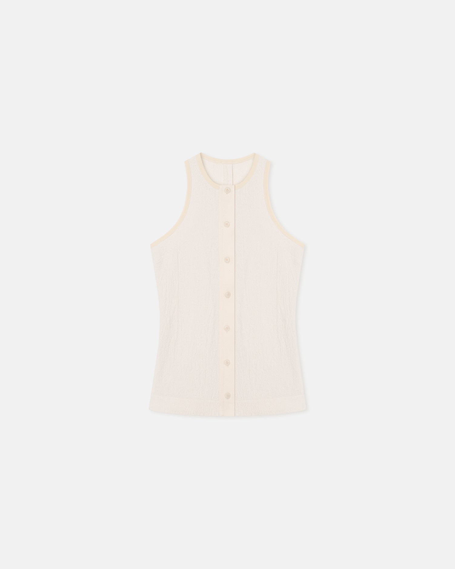 The Arne top is an elevated take on the tank top. Crafted from lightly textured crepe melange, it has a sense of refinement thanks to the button-fastening placket.