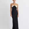 The Nelma Dress is crafted from crisp satin. This maxi dress features a folded-back neckline and slender straps. In black and ecru, it captures a balance of structure and fluidity, to create an elevated piece designed to evolve with the wearer.