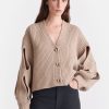 The Karolin cardigan is timeless with its soft cashmere-blend construction and oatmeal hue, but has a modern energy thanks to the cropped silhouette and cut-out sleeves. The ribbed finish accentuates the cosy feel.