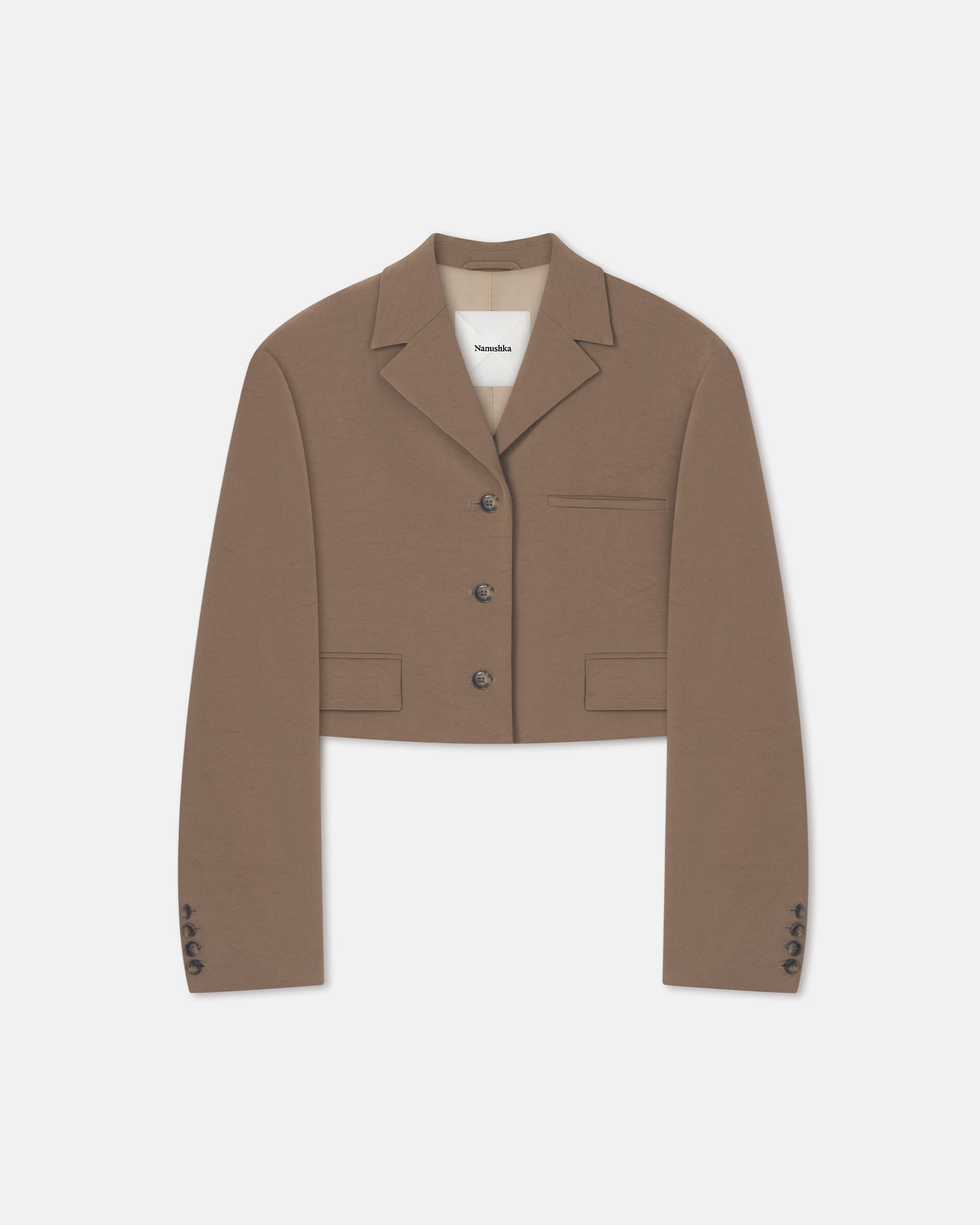 Nanushka Women’s Cropped Paper Jersey Blazer | Brown