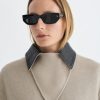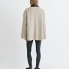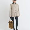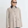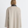 Our Jada Jacket juxtaposes sharp tailoring with an oversized fit. In stone double wool with a black regenerated leather collar.