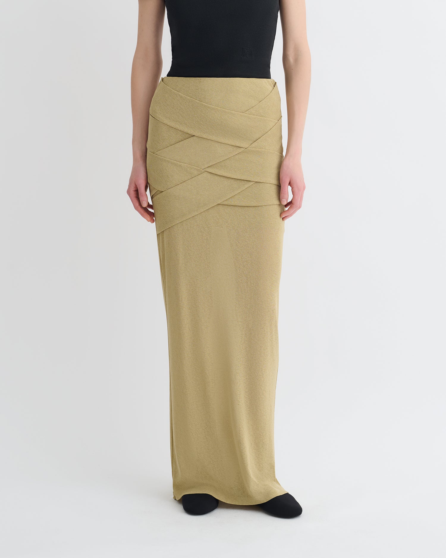 The Shanda skirt is made from soft and lightweight mesh jersey with a crisscross of draping at the waist. The maxi length is effortless and elegant.