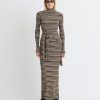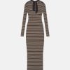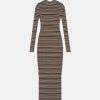 Nanushka Women’s Fine Merino Rib Long Dress | Black & Brown & Green Stripe