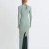 Nanushka’s Mirell Dress echoes the silhouette of the the Arella top but in a longline form. Crafted from fine merino rib, this knitted, turtleneck maxi dress features a neck tie and fitted sleeves.