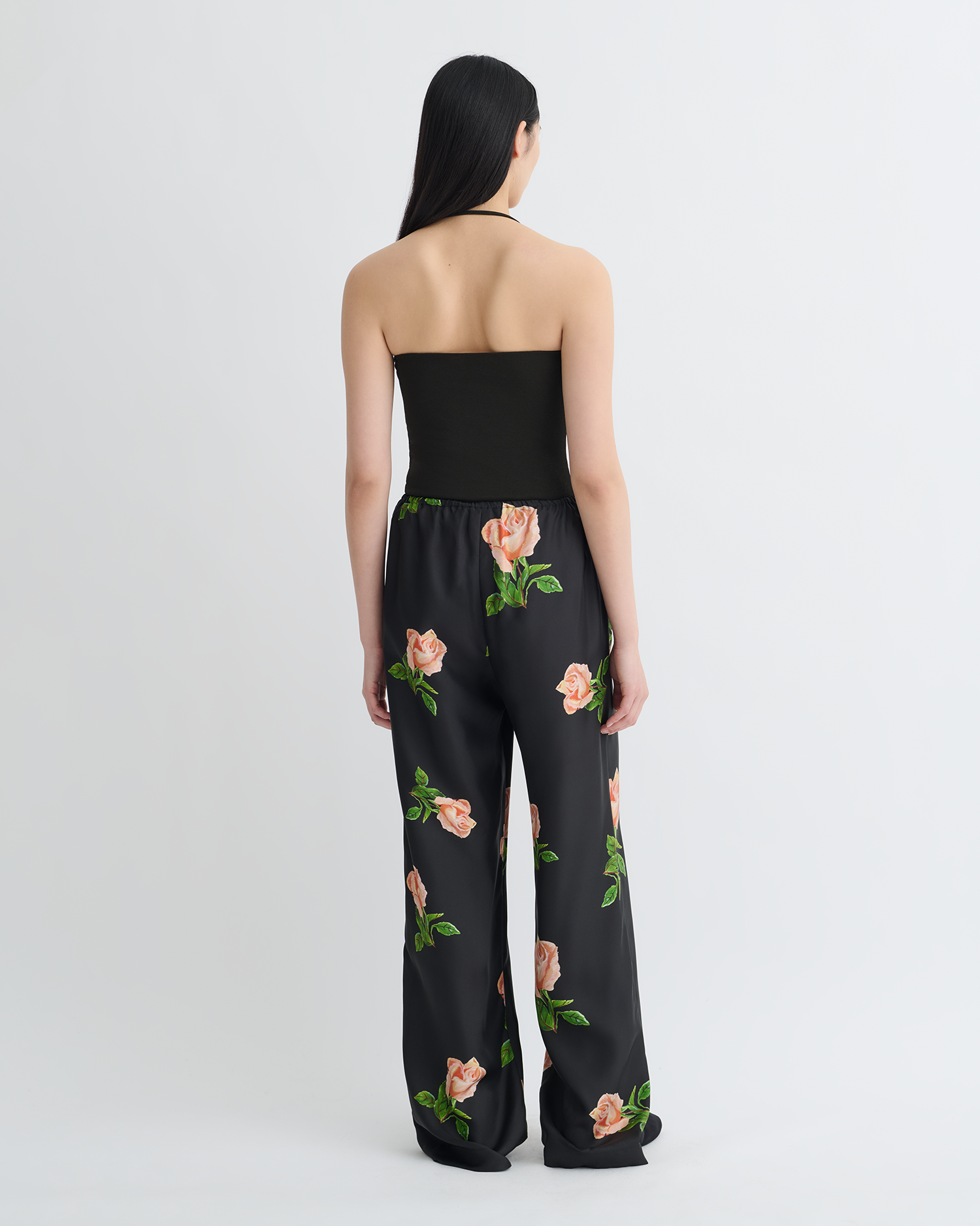 We explore exploring minimalist twists and folds for Pre-Fall 2025. The Rissa top is made from our signature mesh jersey with a halter neck silhouette and ruched bust detailing.