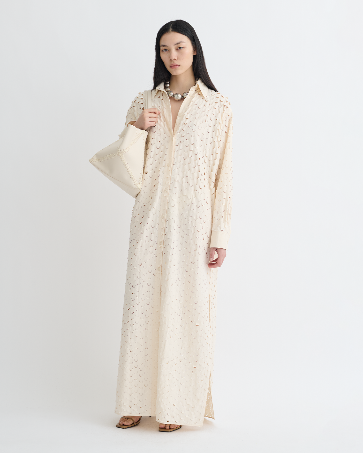 Nanushka Women’s Laser-cut Heavy Poplin Shirt Dress | Creme