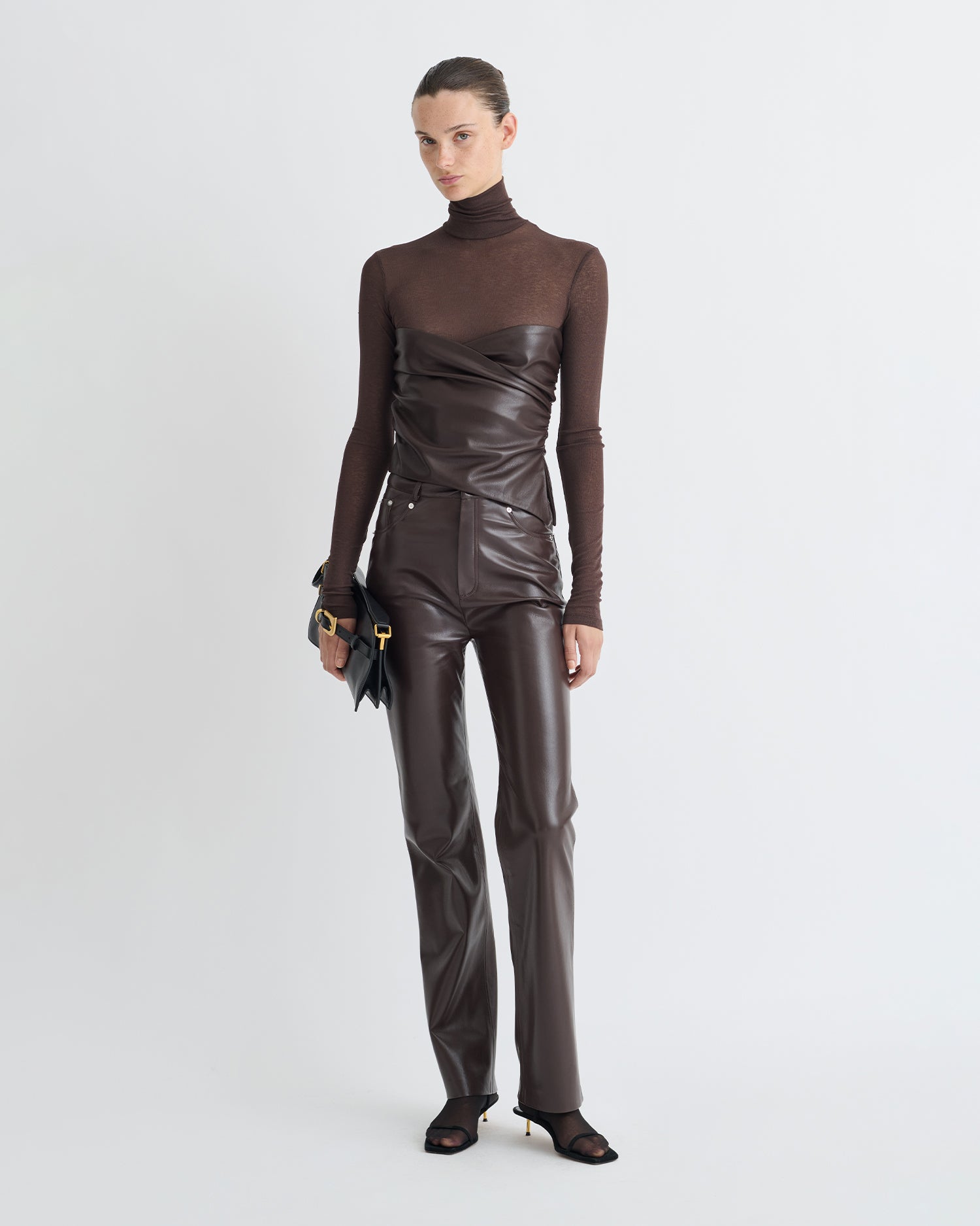 The Jacoba Pants channel contemporary tailoring with their sleek slim-fit design and soft, structured Okobor™ alt leather fabrication. Presented in a rich Coffee Ground shade, they have versatile appeal and will become a timeless foundation of your wardrobe.