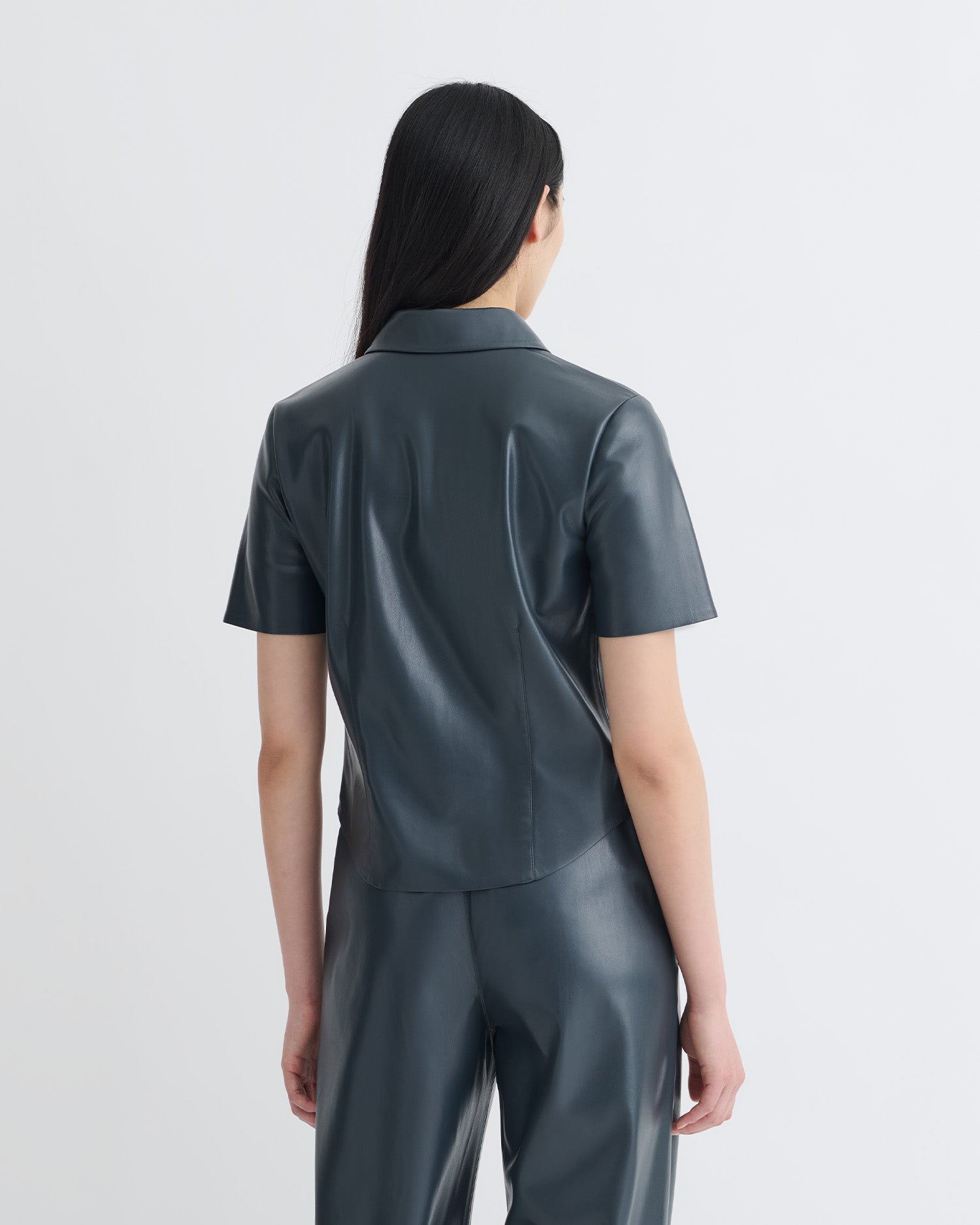 The Clare shirt exemplifies understated elegance. It’s made from our signature Okobor™ in steel blue for a slim-fitting, short-sleeved silhouette.
