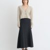 This a-line midi skirt falls gently from the waist and in a charcoal overwashed merino. it is an elevated wardrobe piece for modern dressing.