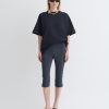 The Saoirse pants reference ‘90s office wear. They are from smooth paper jersey and have a fitted capri silhouette that’s the perfect counterpoint to oversized tailoring.