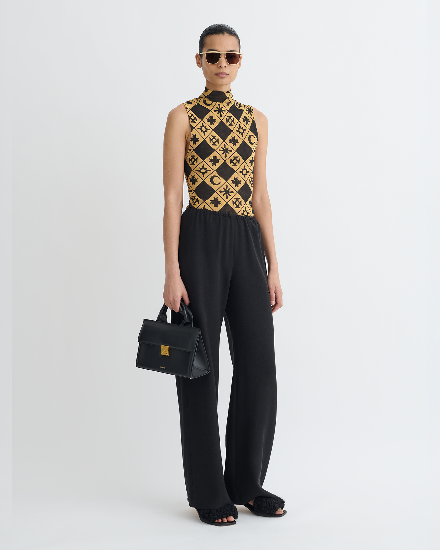 The Annyka top has an understated silhouette – think mock neck and figure-hugging fit – that’s enhanced by oak and black Symbol Tile print. It’s made from our signature mesh jersey.