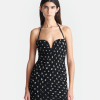 The Jannika dress demonstrates our innovative craft techniques with a new, textured fabrication. Made from polka-dotted seersucker tech chiffon, it has a halterneck sweetheart neckline that falls to a mid-thigh length.