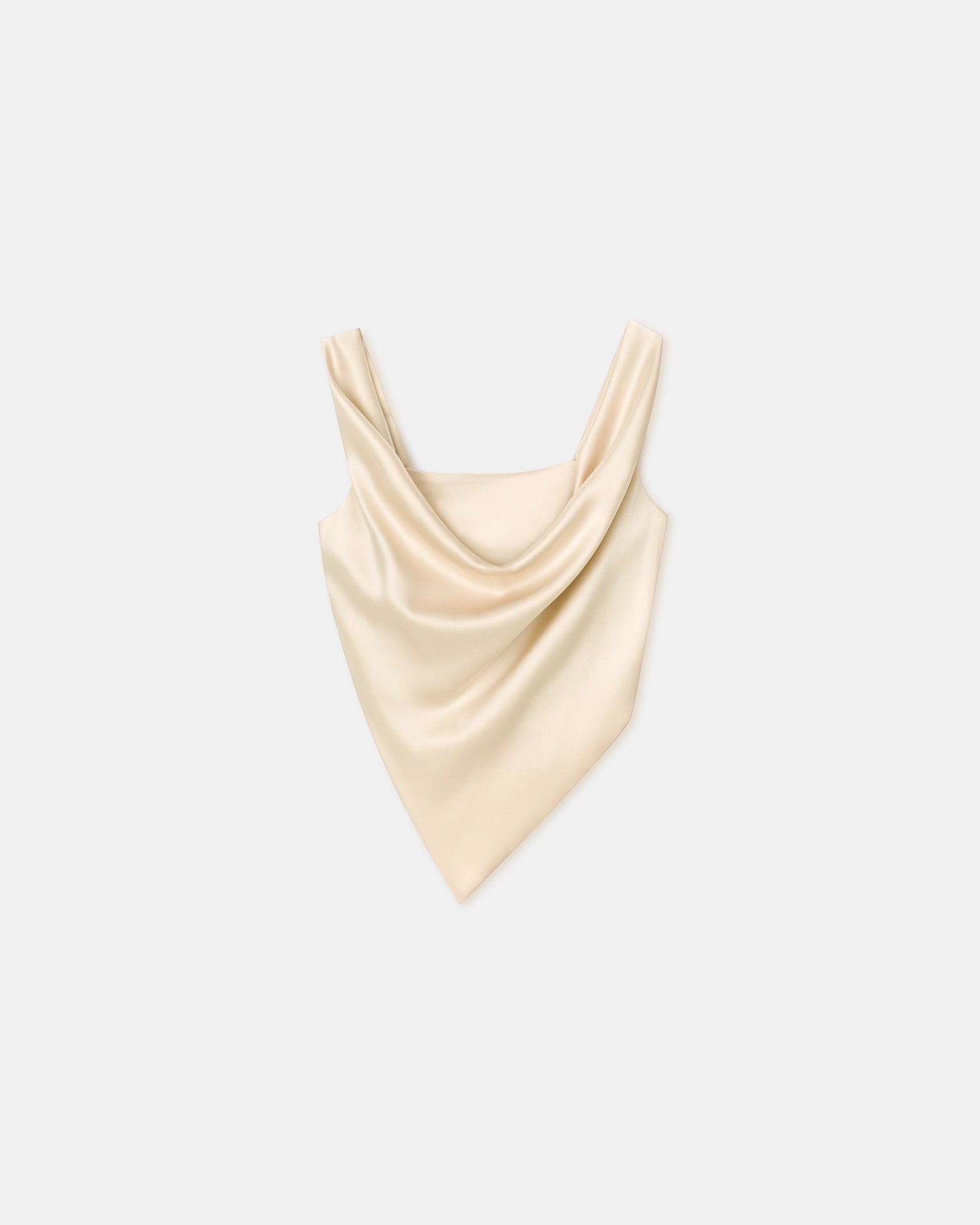 The Petra top is made from our signature slip satin and falls into a draped silhouette. It is distinguished by wide straps and a scarf-inspired handkerchief hemline for effortless elegance.