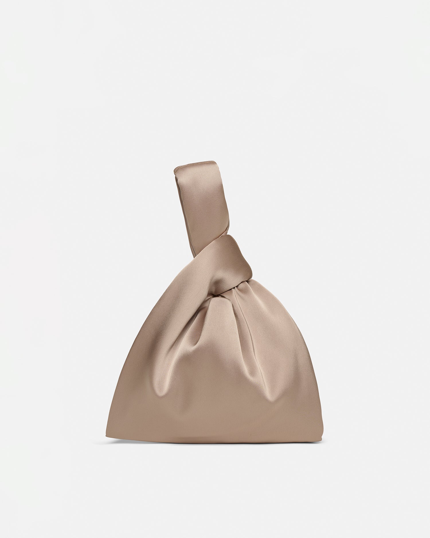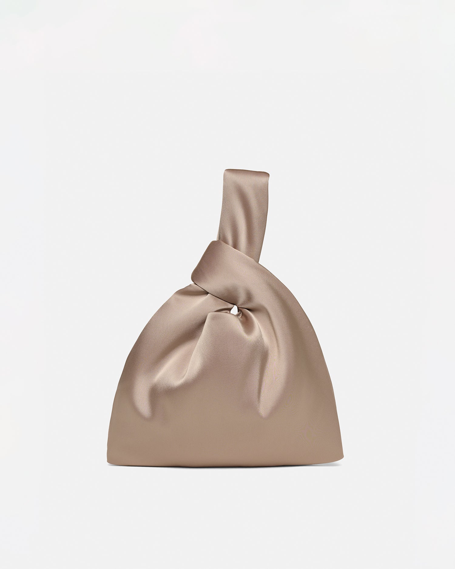 We continually look to update our hero pieces through material innovation and manipulation. This version of our Jen bag is crafted from satin in a dune tone. With a slouchy triangular shape and looped wrist-strap, it is perfectly sized for evening essentials.