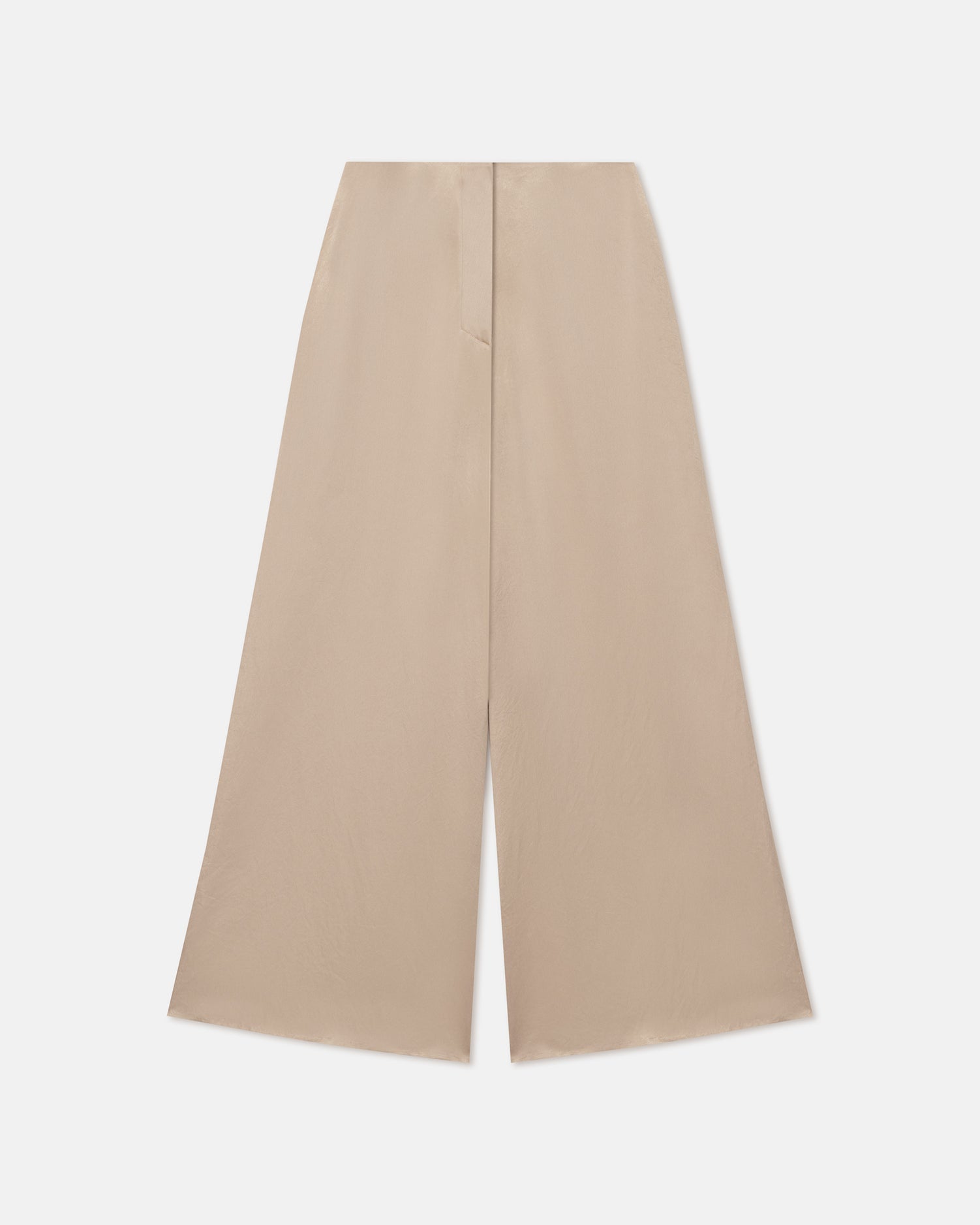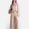 The Zaniah pants have a voluminous wide-leg silhouette. They’re expertly tailored from our signature slip satin and come in a timeless dune hue, coordinating with other pieces in the collection for elegant ease.