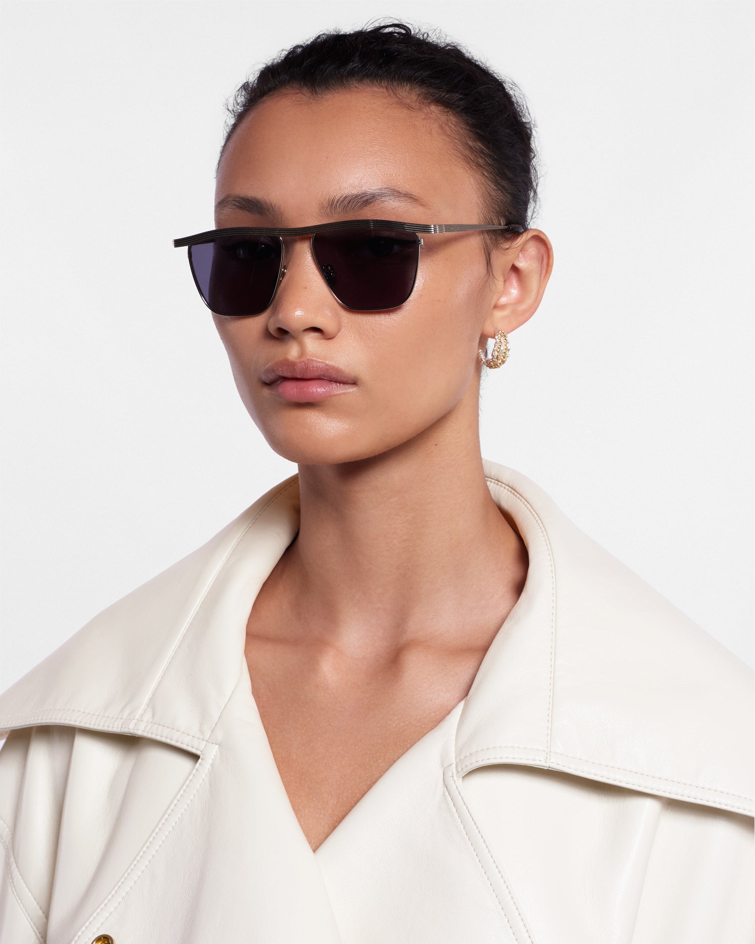 The Noran sunglasses are made from sleek silver-tone metal with a contemporary brow bar. The dark lenses provide full-spectrum protection.