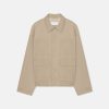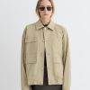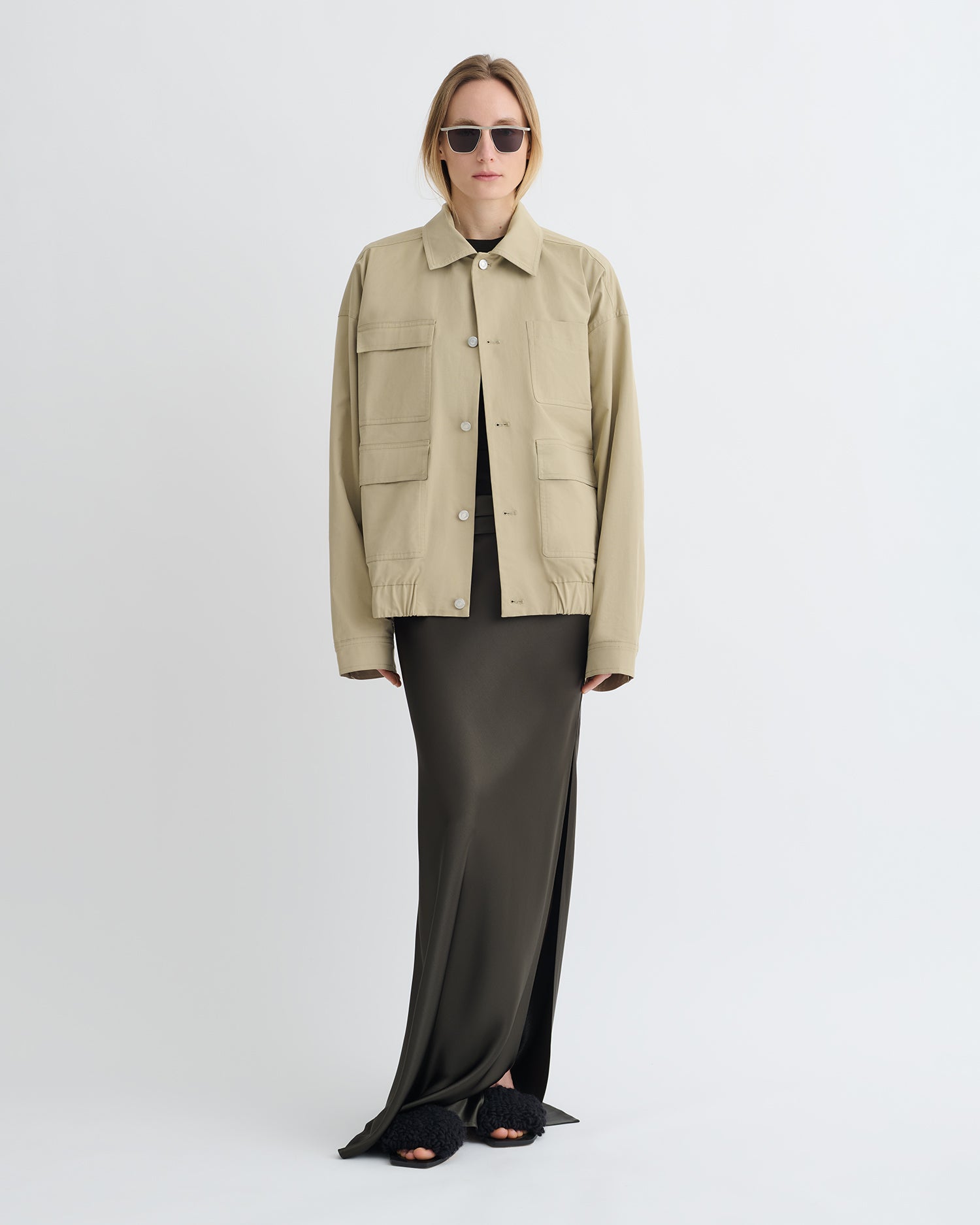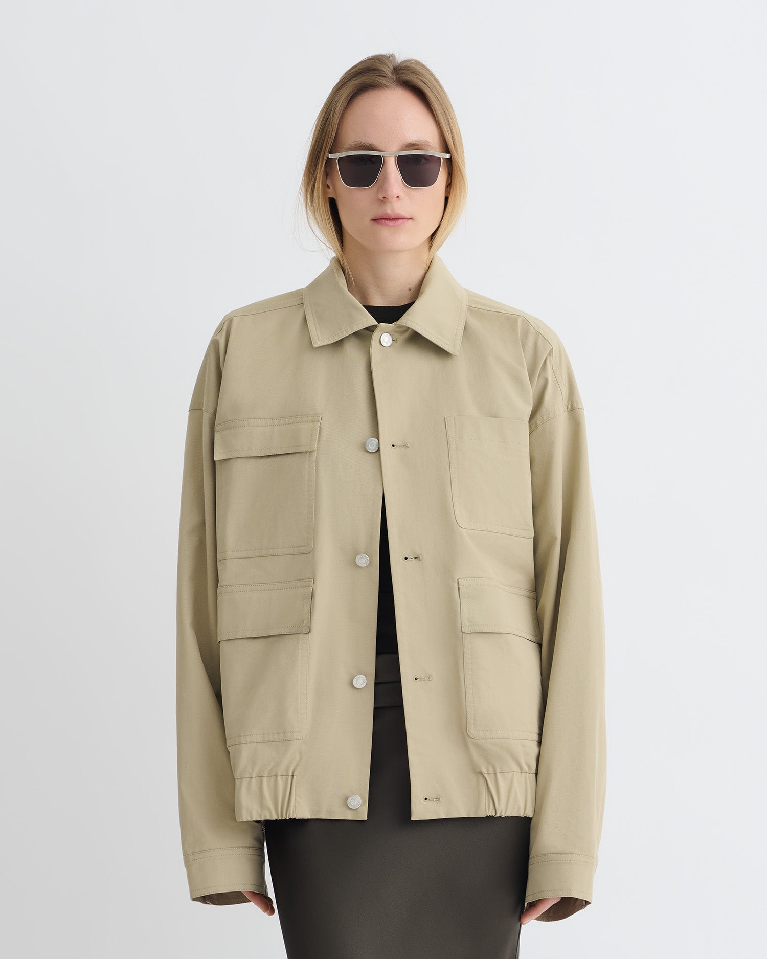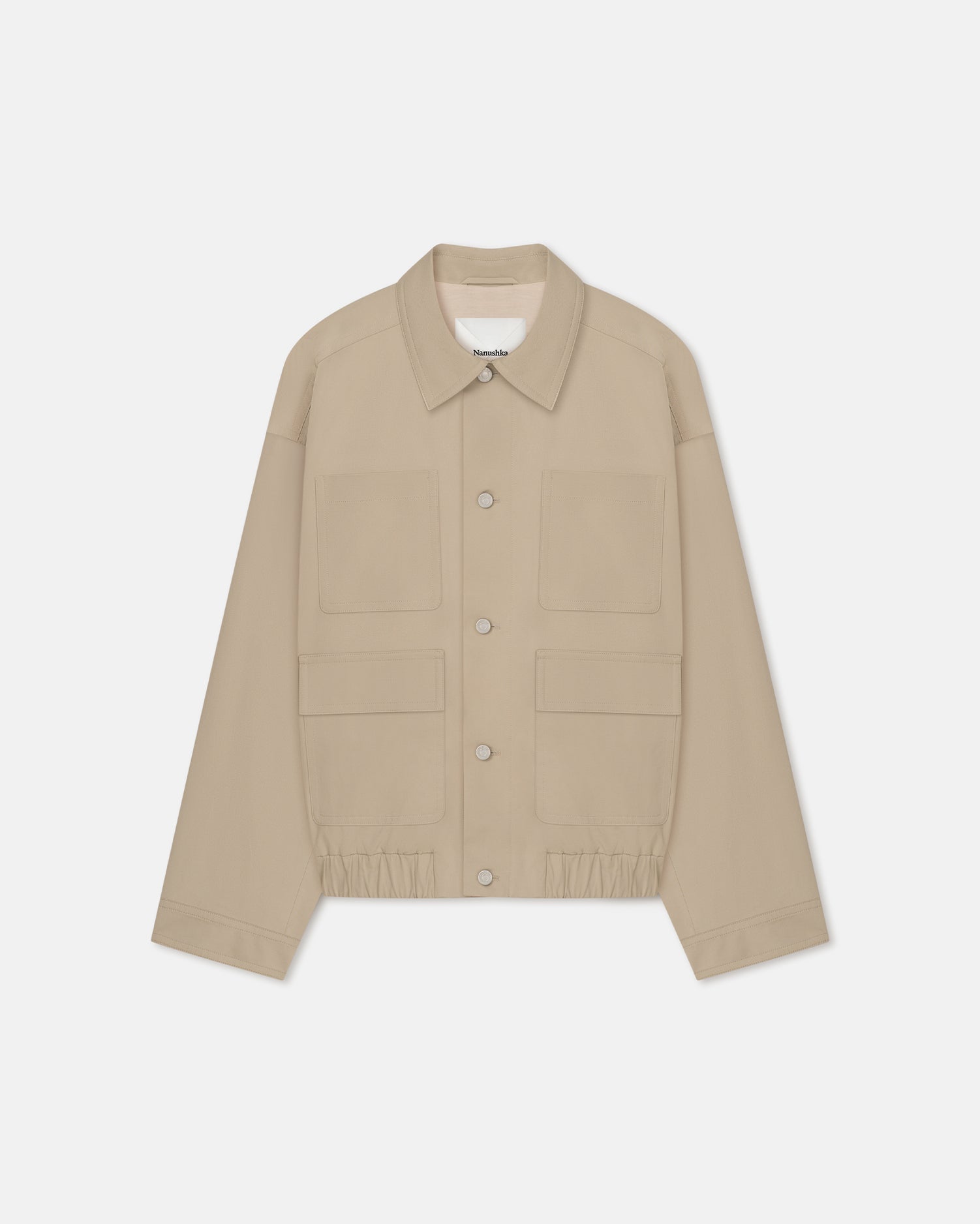 The Zubin jacket is minimally detailed to evoke classic utilitarian aesthetics. It’s crafted from hard-wearing tech twill in a versatile pebble tone, and has a relaxed fit emphasised capacious flap pockets.